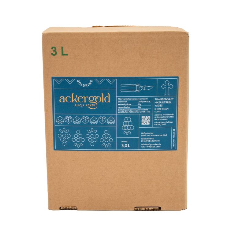 Den weißen Traubensaft gibt es jetzt auch im 3,0 L Pack, ganz natürlich und unfiltriert. Genau wie der Saft aus der Flasche vereinen sich ausdrucksstarke Aromen von Mirabellen, Apfel und Pfirsich.