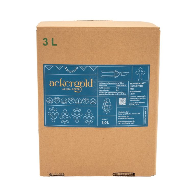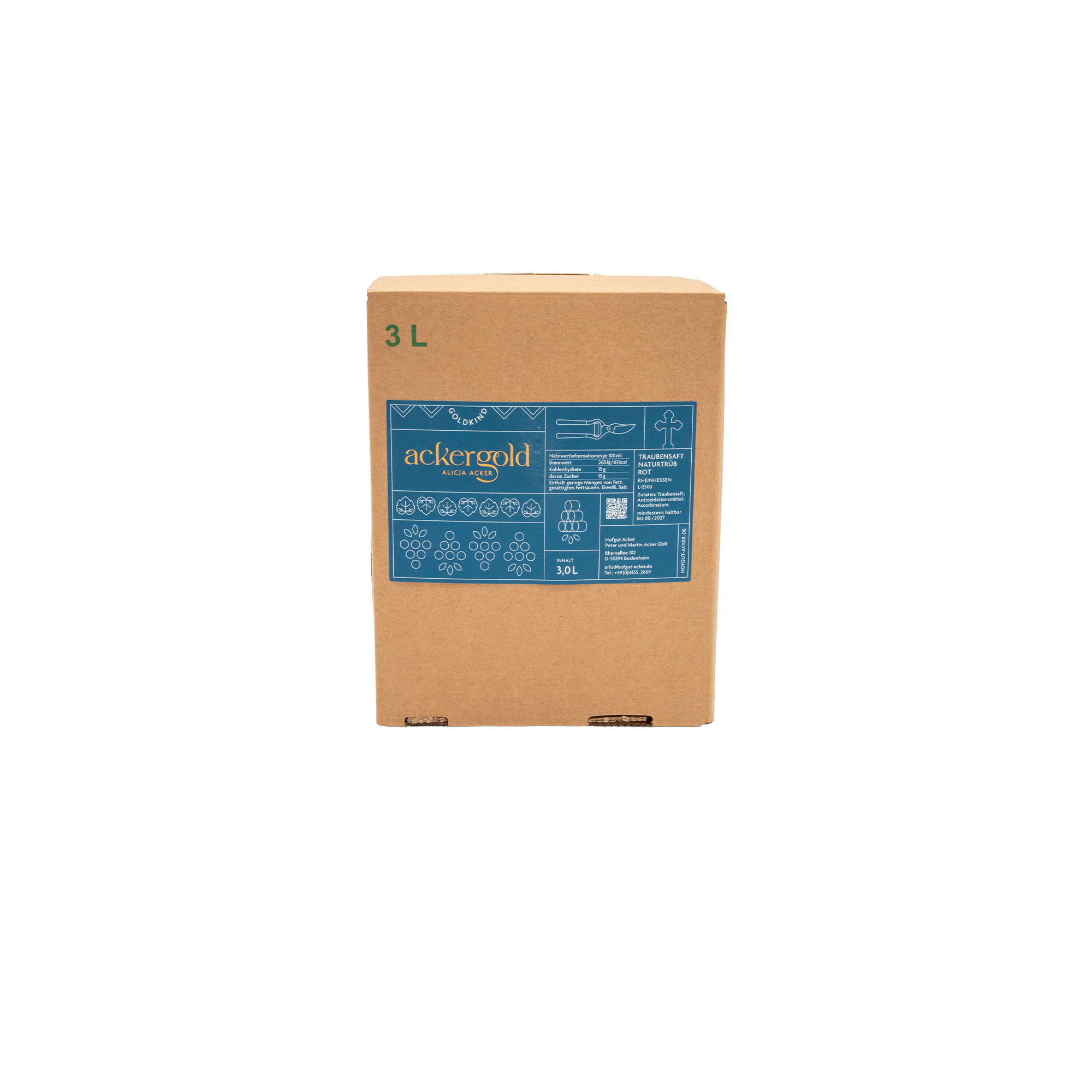 Seit diesem Jahr gibt es den Traubensaft auch als rote Variante und naturtrüb im 3,0 L Pack. Etwas dezenter in der Säure und mit Aromen von schwarzer Johannisbeere, über Himbeere und Brombeere.